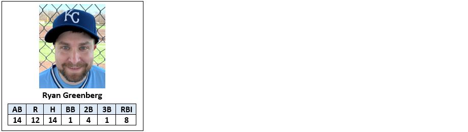 Scott Greenberg 1 – 1, 2 Runs, 2 RBI, BB, SF, GWRBI